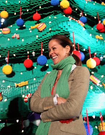 TV-host-turned-mommy-blogger Brooke Burke did the honors, flipping the switch to illuminate the world's largest Lego Christmas tree.