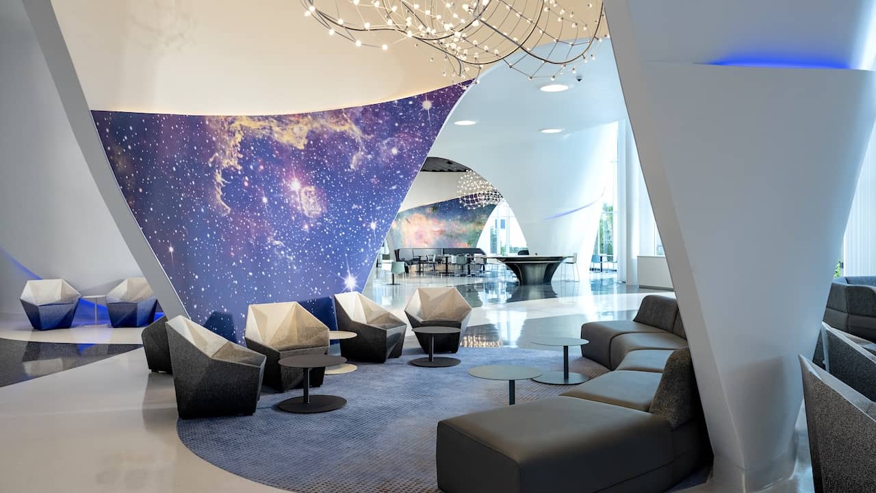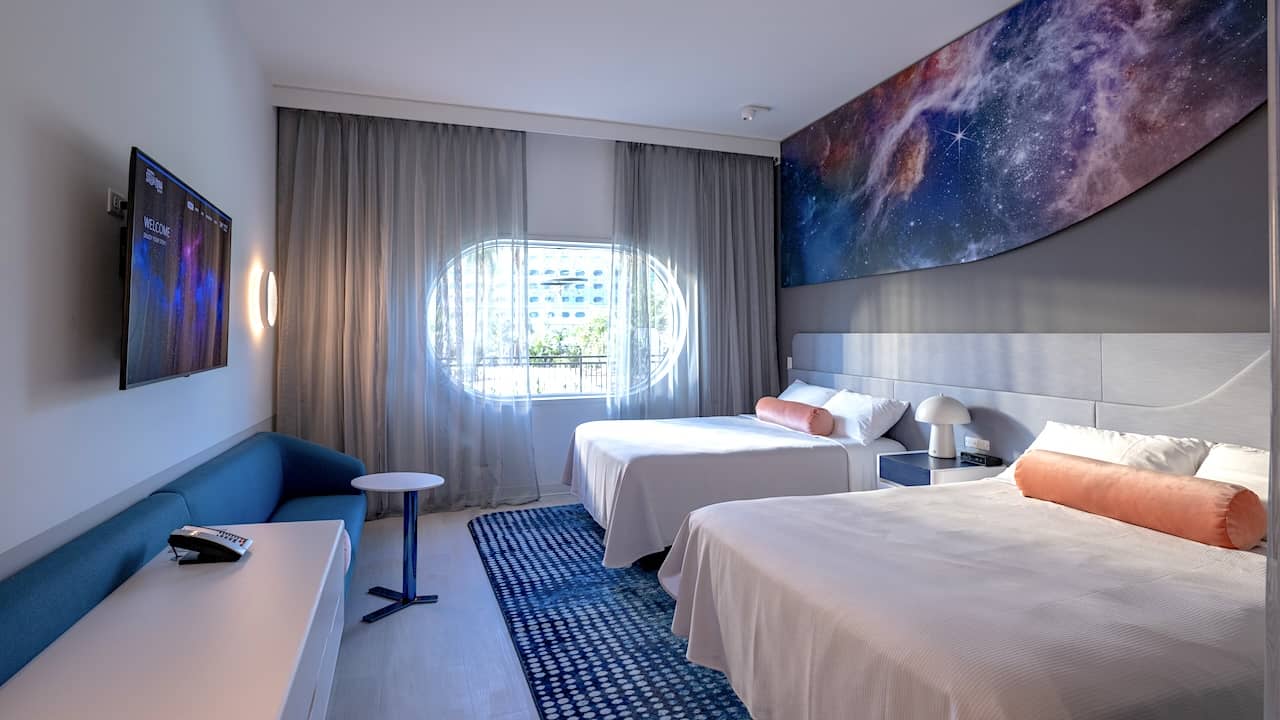 Universal Stella Nova Resort is one of two new Prime Value hotels located near the entrance to Epic Universe. The second, Universal Terra Luna Resort, will open March 25. Stella Nova offers 750 hotel rooms, a pool with a splash pad and fire pit, fitness center, as well as dining options Cosmos Cafe and Market and the Galaxy Bar.