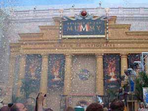 In Hollywood, you're supposedly in Imhotep's tomb the entire time -- not on a movie set. (Which is richly ironic, since in Hollywood, you *really are* on a movie lot. The day I visited, "Meet the Fockers" and "The Ring 2" were shooting on soundstages just a few yards away from the Mummy ride building.)