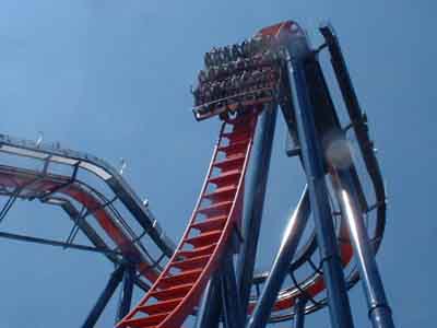 The top of the lift hill grants guests a spectacular view of landmarks including downtown Tampa and the USF campus before rolling right over the edge and pausing. The train holds for a few nerve-testing seconds before being released down the vertical drop, zooming along the ground and back up into an Immelman inversion.