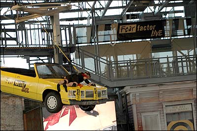 The other attraction that is new since our last visit to this park is Fear Factor Live. The attraction is straight off the small screen with all of the physical and gross stunts that you can think of. I even made an attempt to be a contestant on the show. Approximately 90 minutes prior to each show, the producers hold a casting call in front of the theater where park guests get an opportunity to face their fears. Up to 24 park guests for each casting call are weighed and checked in by the producers. Everyone selected then stands in front of the producers, and says their name, and where they're from. Based on that information, the contestant pool is cut in half to 12. Those people are then shown a video, which shows the three stunts that they will compete in, and are then asked to sign a medical waiver. After that, everyone is given asked where they're from, and the reason why they will win Fear Factor. Based on that information, the producers select the six contestants who will compete in the show. Sadly for me, I was not able to make the final cut, but after seeing the show, my wife was glad I was not selected to participate. In addition to the six main contestants, other park guests are selected during the casting call to participate in other stunts, which include eating a delicious shake of some of the nastiest items you can think of (meal worms, fish juice, squid, etc…), and having dangerous animals placed on your head (scorpions, tarantulas, etc…). The show is actually pretty entertaining, as the six main competitors compete in three stunts with the other audience participants filling time between stunts with gross-out stunts. The competition is pretty exciting, and the stunts look rather challenging physically. This show also offers the park quite a bit of flexibility as they can change the stunts after a while to keep it fresh.