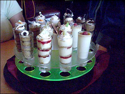 Thanks to the light crowds, we had the luxury of having a wonderful sit-down lunch at Theme Park Insider's #1 theme park restaurant in the world, Mythos. Islands of Adventure is very proud of this distinction, as a giant banner signals guests of this high accolade, and the menus again remind diners of the restaurant's status in the theme park world. I have never had a chance to eat here before, and was really looking forward to it. Mythos did not disappoint as I started my meal with a cream of mushroom soup that was incredibly rich. My entrée choice was the day's Pastabilities, which on this day was corkscrew pasta with sirloin tips and a mushroom-primavera sauce, an amazing creation that would not allow me to put my fork down. My wife chose the Asian Pad Thai pasta, which was also very good. The dessert options were served in shot glasses, a new trend in fancy restaurants these days, and we chose a very delicious shot of tiramisu.