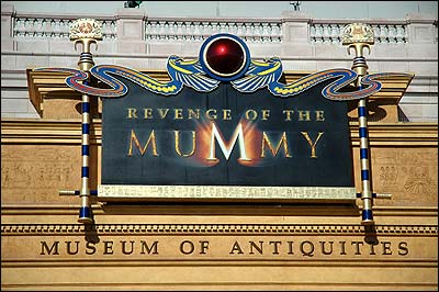 The exterior of the building, which once held King Kong (if only Universal knew Peter Jackson's blockbuster was on the way), looks rather unassuming, a large sign over the pillars with "Revenge of the Mummy" scribed on a black background. Because of our Universal Express, we never experienced the standby queue, but from what I could see, there were a couple of interesting props and things to look at and touch, but nothing quite as intricate as Disneyland's Indiana Jones and the Temple of the Forbidden Eye queue. The ride itself lived up to its billing, and kept us coming back for more over our three days in the two parks. The ride is indeed a roller coaster, but is so much more, with intricate theming that far exceeds just about every roller coaster on the planet. Revenge of the Mummy makes Rock ‘n Roller Coaster seem like a Six Flags ride, especially because of one of the most amazing animatronic figures I've ever seen. While the high-speed coaster is not superb, it does offer some great airtime, and some well-timed lighting and other special effects, and a clever "fake-out" that may not fool you, but may get you to jump out of your seat. Revenge of the Mummy was better than I had expected, and I think some people are not considering the ride as a whole. While as a dark ride, it's not better than Spiderman, and as a roller coaster, it's not a top ten coaster, as a complete experience, Revenge of the Mummy is one of the best rides in Orlando.