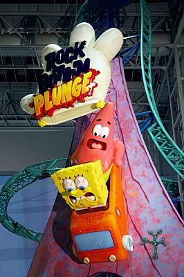 This radical thrill ride launches you straight up to almost 60’, then sends you catapulting down to the ground at speeds that will blow your mind!SpongeBob SquarePants Rock Bottom Plunge