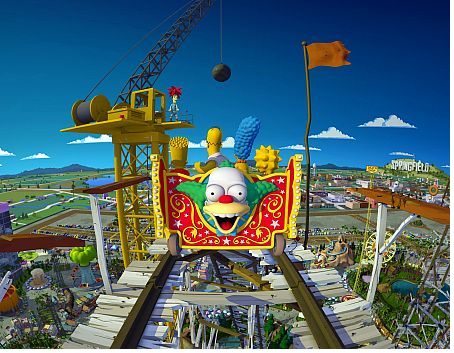As you walk in to the wait line, you get to enjoy "Krusty's Favorite Moments" of the Simpsons last ten seasons. A friend that I was with suggested they should play the movie instead, but I'm glad they didn't, after all, you wouldn't want to see a movie from the middle to the end and not have a clue what's going on, so I like the funny and entertaining clips that were selected. The wait time for me today was 60 minutes and the "Favorite Moments" video on the screens just barely started to re-run what I had already seen as I was waved in to stand in line to get on Car 2. The inside was also done very creatively with character interactions, but you have to go and see it yourself, I don't want to spoil anything, they were quite amusing. The Ride itself with the huge IMAX screen was phenomenal. It was what i'd like to call a "simple, but effective and well done attraction." The Ride was very well done. I had no idea what the ride would exactly be about besides something having to do with Krustyland Theme Park and I was surprised by the fun filled action with many classic Simpsons Characters.
