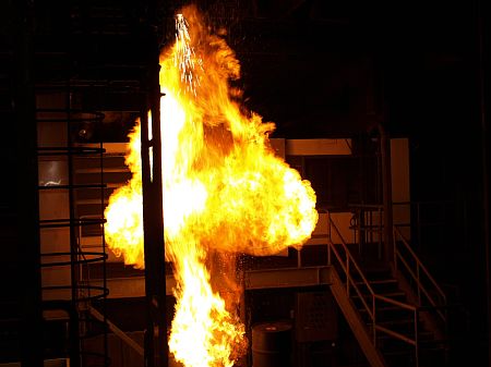 It's the third set we all came to see; a life-sized reproduction of the film's climatic scene, complete with real-life pyro effects, hot enough to make folks in the first row lean back and clutch their cameras, lest Backdraft's flames singe their newly-bought gadgets from a certain electronic shop's "going out of business" sale.