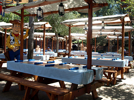 Seriously, it's as if Disney was trying to keep people away. Celebration Roundup & Barbecue is not listed among the Frontierland dining options in the Disneyland guide map. Nor is it listed on the show schedule, despite its character appearances and musical performers. (It is mentioned on the flap of the guidemap, along with other new and upcoming attractions and events, but that's not where folks look when deciding what to eat.)