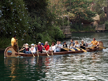What better time, then, for Disney's cast members to drive to the Magic Kingdom for their annual ritual of workplace masochism? The morning twilight provides just enough daylight for the Disney's annual Canoes Races of the World - a cast competition that pits teams of CMs at Walt Disney World (and Disneyland) against one another, to see which department can paddle a canoe around the Rivers of America most quickly.