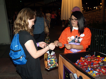 Here's a tip: Don't start your evening with the candy hand-outs. Wait out the initial rush, then start with the candy zones farthest from the castle, which will be significantly less crowded. During Mickey's Halloween Party, the longest lines in the park are for the candy. But you paid for the rides and shows, too. Go enjoy those while everyone else queues for the sweets.