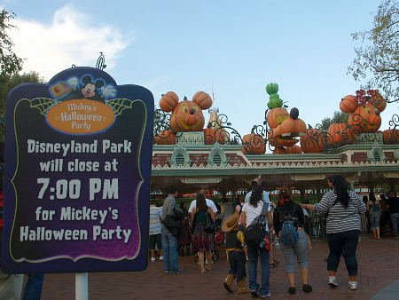 Mickey's Halloween Party, a night-time event which requires a separate admission, throws in a Halloween-themed parade and fireworks, dance parties and, of course, unlimited trick-or-treating. Disney's set up seven zones around Disneyland Park where visitors can file past workers handing out fistfuls of candy. Party-goers can enter the park as early as 4 pm in advance of the party's official 7 pm start. (At 7, Disneyland cast members start directing any day guests without the party's purple wristbands to the park's exit.)
