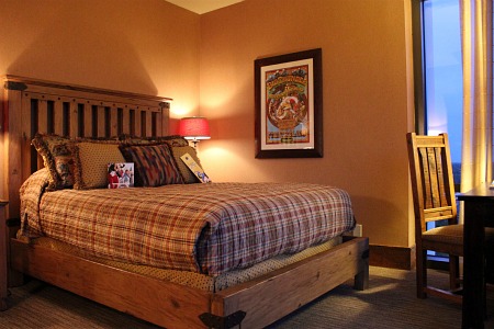The rustic-yet-pricey decor continues in the second bedroom. (Nice attraction poster!)