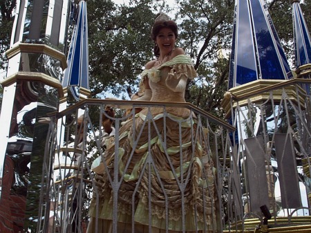 After lunch, we split up. My daughter and I walked over to ride the Haunted Mansion and my sister, her husband and daughter went with my mother over to Dumbo while our VIP host took my son and wife to Frontierland to ride Big Thunder Mountain. Then we all met up and the VIP host took several of us onto Winnie the Pooh before we walked over to Tomorrowland and split again. My son and I rode Space Mountain while the rest of the group went on Buzz Lightyear. After that, we returned to Liberty Square to claim our front-row seats for the parade.