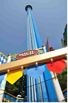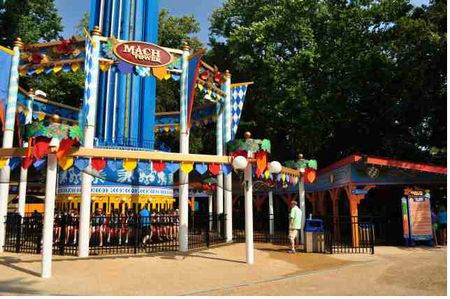 The tower represents the initial phase in a revamp of the park’s popular Oktoberfest area, which will feature an as-yet-unnamed multi-launch roller coaster in 2012. Mach Tower literally towers over the park as guests can see the pinnacle of the ride from virtually everywhere inside the park, and just about anywhere within a 1-mile radius of the park.