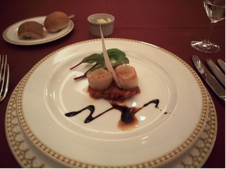 Magellan's is not an a la cate restaurant, but offers several choices of multi-course meals. Watching my yen at the end of my journey, I opted for the least expensive one, at 4500 yen (about $59 US). Remembering how much I had enjoyed my lunch at the S.S. Columbia Dining Room, I was thrilled to see that the appetizer course was another serving of scallops.