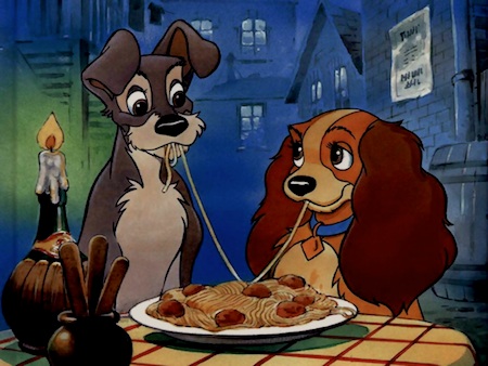 A few days ago, I asked on Twitter and Facebook for suggestions on a fun, romantic thing to do in the theme parks that didn't require using a time machine to go back three months and book and restaurant reservation. I thought the best response was from Brian, who suggested to go get an order of "Quick-serve S'ghetti & Meatballs, reenact scene from Lady & the Tramp."