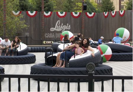 Luigi's Flying Tires is a unique attraction where riders float on air in giant tires around Luigi's back yard.