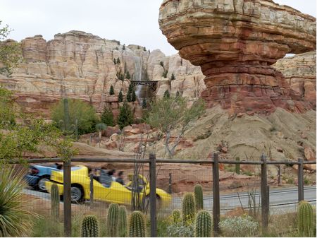 Cars Land faithfully recreates the town of Radiator Springs, the setting for much of the first Cars film, where Lightning McQueen gets stranded on his way to the Piston Cup final, only to learn some lessons about friendship while he's there.