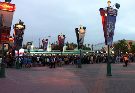 Radiator Springs Racers went down for about an hour around 9:30, backing up the queue through Cars Land. Late arrivals (perhaps encouraged by reports of the lighter-than-feared crowd) also packed into the area, and by noon, Radiator Springs Racers was reporting an estimated six-hour wait. I'm wondering what the crowd will be like when people get off work this evening and think about heading to the park.