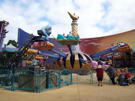 Walt Disney Studios Paris, alas, does it the old way. Want an illustration? Take a look at the park's Aladdin-themed spinner ride, Flying Carpets over Agrabah: