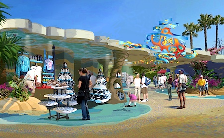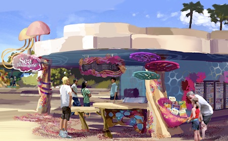 SeaWorld rebuilt the entrance of its Orlando park several years ago, to generally good reviews. And Disney just showed with its Buena Vista Street makeover of California Adventure's entrance how changing an entry plaza can improve the overall feel of a park. Ultimately, though, aesthetics are just part of the experience. I'm thinking of the touch pools as the entry plaza "meet and greet" so common in other theme parks, this time featuring the real stars of SeaWorld - the marine creatures themselves. That would give the land a solid attraction to make the park a nicer experience for visitors. And I love the idea of replacing the ticket windows with something more open and helpful. But the park also will need improved retail and especially dining to make Explorer's Reef the kind of comfortable, engaging place where you want to hang around a while. (The inclusion of vending machines on the concept art for the dining leaves me a bit skeptical on that count, I'll admit….) Long term, I'd also like to see the park do more to create a "hang around" space on the bay front at the back of the park, too.
