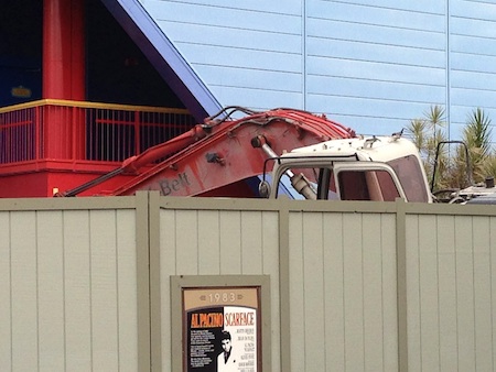 If you look carefully, you can see construction equipment getting ready to go, behind one of the walls in the area. Construction walls also block the lagoon in front of IFFF and Simpsons.