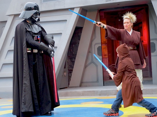 It is something to watch them line up with their lightsabers and walk proudly toward the stage by Star Tours. Here again, during the show, there is a Disney Photopass photographer taking pictures of the entire show. Your children will each get to face off with Darth Vader (on the weekends and during peak season, Darth Maul is also there to battle with a group at the foot of the stage). After they have sent the Lord of the Sith away in defeat, they line up to receive their diplomas. Once you are given your special Jedi Photopass card, you can take it to one of the Photopass stops at DHS to edit out those you do not want. I recommend doing this unless you want a headache of going through over two hundred pictures to find those of your children. I decided to skip Disney editing and got the lovely job of going through those pictures once we were home.
