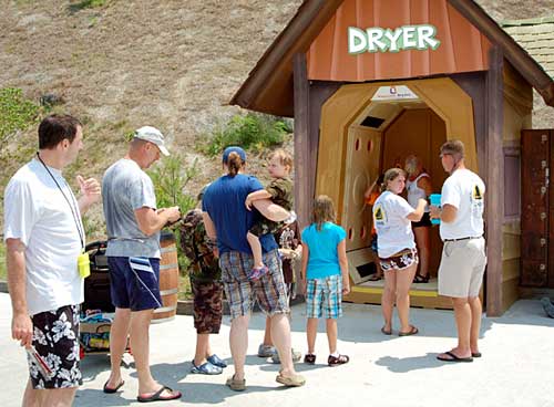 The Soggy Bottom Boys — Don't you just love when you're next in line for the ride, and the person that gets out of your future seat looks like they just jumped in the lake? Inevitably, you walk upon a wet seat, something expected on a water ride…not so much on a dry ride. I'm fine with a seat freshly splashed by a wave or some other form of water cannon. I am not fine with a coaster seat containing somebody's 30 minute old warm, smelly, swamp-assy water sloshing around in the car. Who knows what's in that cocktail. I can only imagine what goes through the mind of the germaphobes in line. For the love of God, fellow man, public safety, and my pants…dry yourself off.