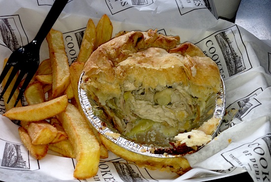 When I walked past Cookes and saw "Dublin Style Pies" offered on its menu board, I knew where I'd be having lunch. I opted for the Chicken and Field Mushroom Pie, with chicken breast, mushrooms, leeks and potatoes, served with chips, which Americans will recognize as French fries. ($11.95)