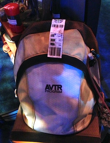 The host guarding the desk told me that the Imagineer "is just back from a research trip to Pandora." See? There's his backpack, complete with a luggage tag from the Burbank airport to Pandora station.