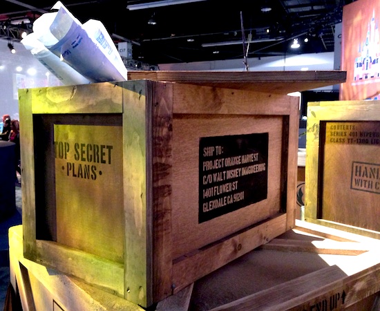 The first is a model of the Downtown Disney Orlando re-do, Disney Springs. But, let's face it, that's not the one you care about. What's this to the right, with those big crates labeled "Project Orange Harvest"?