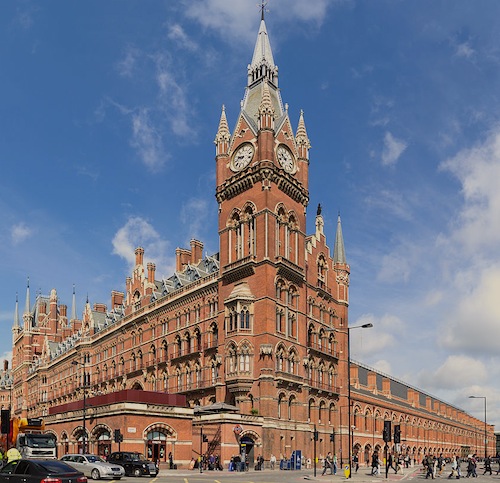 The Harry Potter movies filmed several King's Cross scenes inside the station, though the exterior of adjacent St. Pancras station was used as the exterior of King's Cross in Harry Potter and the Chamber of Secrets. St. Pancras is the London terminus of the Eurostar train, and is connected to King's Cross via pedestrian tunnels and a common London Underground station.