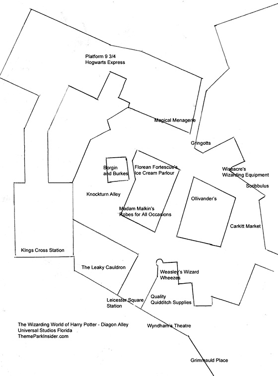 Universal has created an excellent interactive "walk through" experience on its Harry Potter website, but it only allows you to walk up the main path of Diagon Alley. It doesn't give you much information about the relative location of other features in the land. And good luck getting it load, with the traffic it's been getting the past two days!