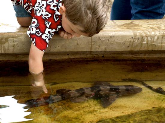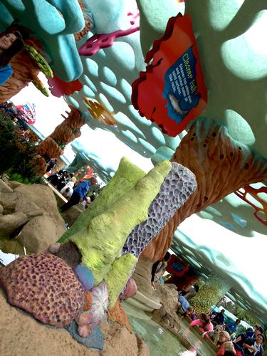 Once you "dive" under the wave and enter the park, you will find yourself surrounded by coral reef decor, with four touchpools inviting you to come get your hands wet and get close to some animals.
