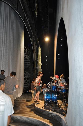 London Rocks represents nearly five years of creative effort and planning by the park to bring live performance back to the double-scale replica of William Shakespeare’s famous auditorium. However, putting a live, Broadway-caliber stage show onto a stage that was only designed for movies and small stage presentations represents an elaborate effort. An extensive renovation of the Globe Theater was necessary to create a full theatrical backstage complete with costuming areas, dressing rooms for two separate casts, prop storage, and a cast lounge. While the audience’s seating area and lobby remains relatively unchanged, everything from the front of the stage back is virtually brand new. Even the stage itself underwent a complete renovation to feature a sloped performance platform that allows the entire auditorium to see all of the performers, even actors in the back.