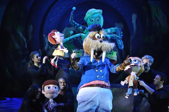 While the sets are relatively minimal, the costumes are anything but. The outfits start relatively simple, but go from trippy — including giant bowler hats, enormous lips, and camera masks — to elaborate, including a walrus and octopus outfit. The show even draws a little bit from Avenue Q with a very neat puppet sequence that younger guests will love. The enhanced backstage areas were absolutely necessary to pull of many of the costume changes in the show, and it’s clear that the costume department went all-out to give a full blown, professional musical theater experience. To add a bit more to the experience, Busch Gardens repurposed the existing 4-D effects of the seats to add vibrations, audio, water and air effects as an enhancement to what is happening on stage.