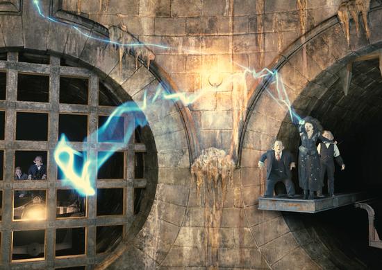 Helena Bonham Carter and Ralph Fiennes work among the "A" team of Harry Potter actors, two superb professionals who have crafted utterly captivating villains, and Universal has brought them on board to recreate their roles for this ride. To see these two at work in these characters again would by itself be a joy. But larger than life and in sharp three-dimensional projection? I could watch them here all day.