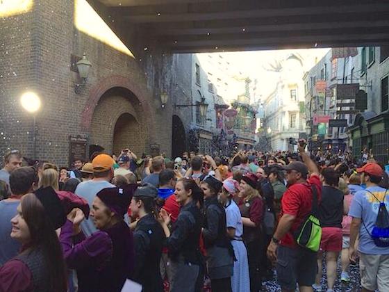 The line of fans didn't match that for the opening of the original Wizarding World in 2010, but it did extend back around the Universal Studios Florida lagoon and through the park.