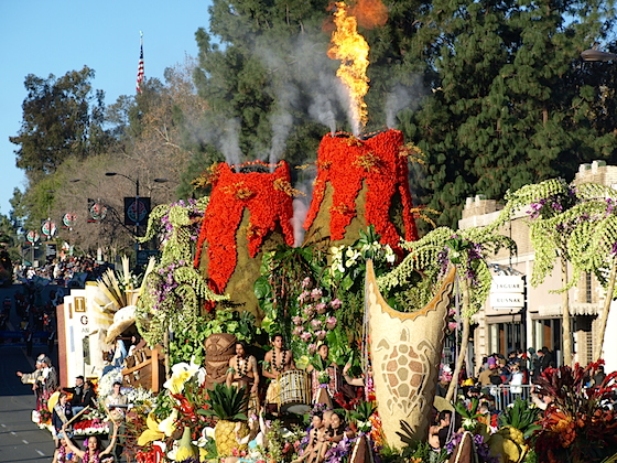 Of course, the real stars of the Rose Parade are the floats, including this spectacular salute to "The Rhythm of Hawaii."