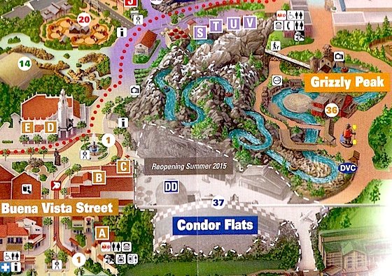 Disney's new plan for the area will make the former Condor Flats an extension of the much more beloved Grizzly Peak, with better landscaping and decoration to match the rest of that land. The "Airfield" part simply acknowledges the presence of Soarin' Over California, which — as one of the more popular attractions in the park and its original hit — ain't going anywhere. But instead of being contained within a desert testing ground, Soarin' Over California now will take off from something like a mountain valley national park airstrip, which is probably a more appropriate way to frame the attraction. Heck, cut the opening shot of the Golden Gate bridge and the film could start with us flying above a "nearby" Sierra Mountain river.
