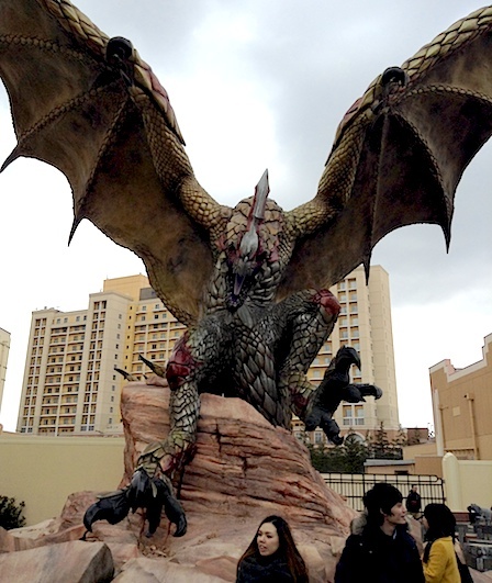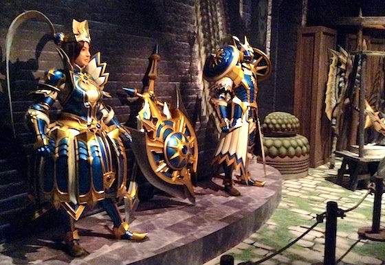 After meeting this flamboyant character, it was time to check out the Monster Hunter: The Real indoor walkthrough attraction. There was no line for this one, and it was easy to see why. The stiff mannequins dressed up in ‘Monster Hunter’ garb were a fair deal less interesting than that walking cat creature. But the details were still impressive, especially when it came to the two giant monsters: the dragon-like Seregios and the fuzzy/scaly Zinogre. The latter monster was supposed to perform some sort of lightning effect, but his batteries must have been worn out on the day I was there.