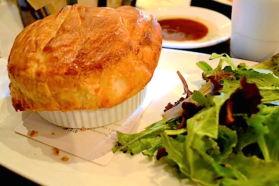 The chicken pot pie was unique and hearty but not particularly memorable. It included a side salad, though that fact wasn’t mentioned on the menu.