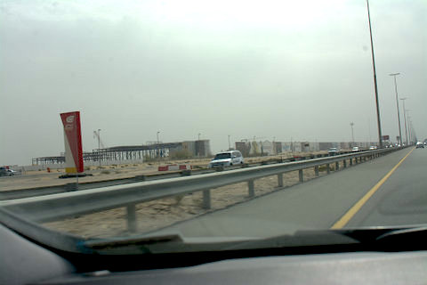 Update: Reader Brandon emailed a couple photos of the Motiongate construction site "taken while driving 140KPH on Sheik Zayed highway. The site is about 5 miles outside of Dubai and about 60 from Abu Dhabi. Not much to show, just the huge billboards put up to hide construction."