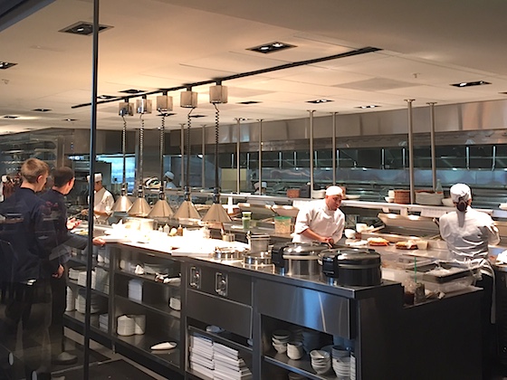 When you walk in, you’re not only greeted by a group of friendly staff, but you’re also greeted by the grandness of the place. The restaurant is a big and open, two stories. Large crystal chandeliers hang from the ceiling. The restaurant has two bars, one on each level. There are private dining areas on each floor. The very modern restaurant has a nice flow, as it is easy to find and get to your seat. The entire kitchen is viewable, but protected by a wall of glass. The menu features a multitude of dishes, mixed drinks, beer, and a wine list that features Morimoto’s signature sake.