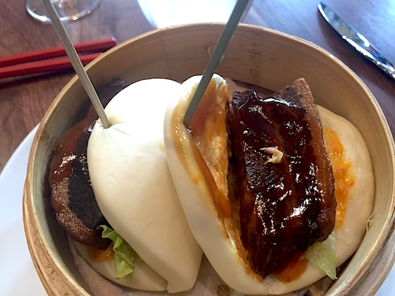 The manager said Chef Morimoto spent weeks at the restaurant training his chefs. That made me very excited so I popped open the menu and immediately ordered a few appetizers for the table. We ordered the Rock Shrimp Tempura ($16), Kakuni Pork Bao ($10), and Edamame ($6).