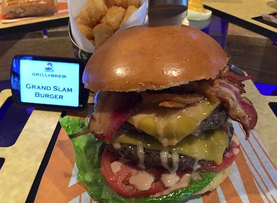 The featured burger was the Grand Slam Burger ($20 - above). The Burger has two half-pound beef patties, applewood smoked bacon, cheddar cheese, butter Bibb lettuce, tomato, crispy Tabasco onions, and barbecue ranch, on a toasted brioche bun. The burger is big enough for two people to share and could be considered a good deal for that reason alone. I must also mention that I was surprised how great the Lamb Burger ($15.99) was. It’s served with grilled red onions, feta cheese, Tziki sauce, and arugula, on toasted brioche bun. However, I would not give this a try unless you like lamb, especially ground lamb.