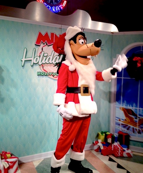 When we arrived, we checked in at the podium outside and were given a pager. We took a seat on the porch, and, within minutes, our pager went off and a server called our name. We joined a short line that had formed of people who were waiting to be seated. When we went in, we learned why there was a wait - Santa Goofy was greeting families and taking photos by the entrance.