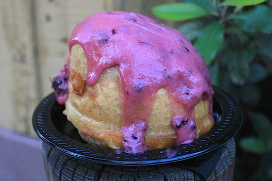 But the undisputed king of the Boysenberry Festival is Knott's Fun Bun, a large cinnamon roll, dipped in funnel cake batter and fried, then topped with boysenberry cream cheese frosting. ($8.99 at Ghost Town Grub)