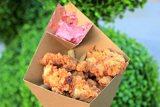 Every time sampled tonight included Knott's iconic boysenberries in some form, usually a boysenberry-infused barbecue sauce for the savory items. One of the new items this year will be Short Ribs, which are marinated for 24 hours, grilled, then finished with the boysenberry BBQ sauce. Knott's served them over rice. (Available at Spurs Patio Grill for $8.79. Note that serving sizes at the park may vary from what we picture here at the preview event.)