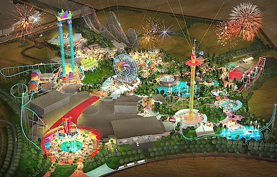 Six Flags this morning released its first detailed concept art for its planned theme park in Dubai. Six Flags Dubai is scheduled to open in late 2019 as the part of phase two of the Dubai Parks & Resorts development, which will open this October with motiongate Dubai, Legoland Dubai, and Bollywood Park Dubai.