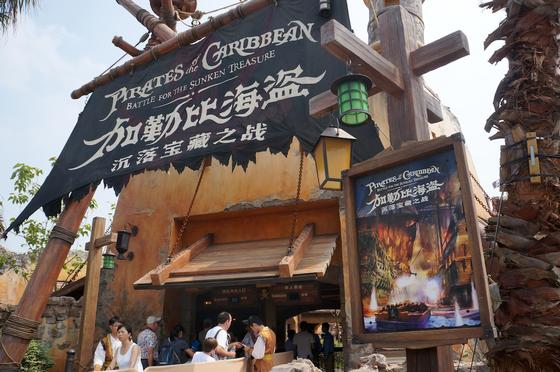 Two of them are tied up as the number one attraction at Shanghai Disneyland. In alphabetical order, I shall begin with the new take of a beloved classic, Pirates of the Caribbean – Battle for the Sunken Treasure.